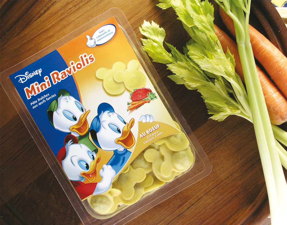 Industria alimentare – Queste confezioni di specialità a marchio Disney, con Mickey Mouse come cuoco, sono rivolte al mercato inglese.
